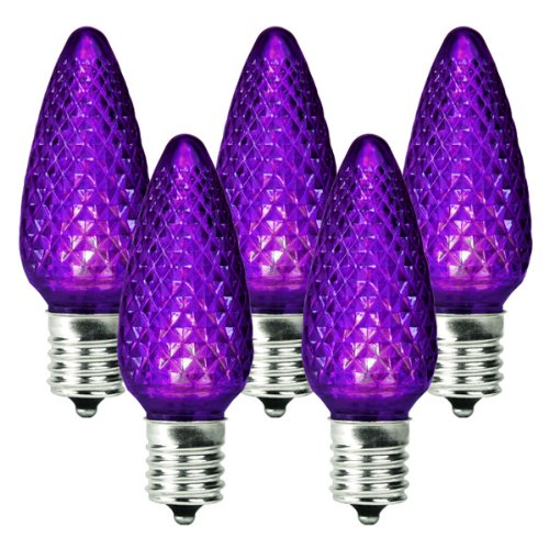 Christmas Lite Co. C7E12PUR - Wattage: 2.4 Watts Per Bulb, Base Type: Candelabra, Bulb Type: C7 LED Replacement Bulb, LED Color: Purple, UL Listed: Indoor/Outdoor, Case Quantity: 20 Boxes, Price Shown: Per Box of 25 Bulbs, Life Hours (Avg): 30000, :