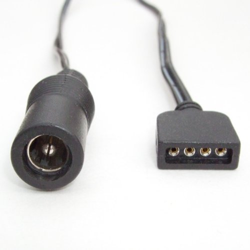One end of this cable supports a 2.1mm DC plug (5.5 mm outer diameter and 2.1 mm inner diameter) for the power. The other end provides sockets that are to be directly connected to the LED light strip pins.Fits Aludra Lighting Strips, Amazon Product number: B0036JDPWMPower supply is sold separately.