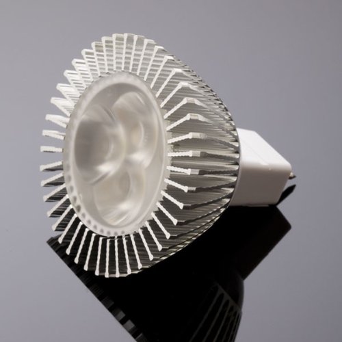 Light emitting diodes (LEDs) produce light that is inherently directional thus making them perfect for spot and flood light applications. The MR16J utilizes 3 individual LED elements that combine to form a single beam of high quality light. The 4 watt LED MR16 is comparable to a 20 watt halogen. It is available in 3000K and 6000K color temperature versions. The 3000K option produces a warm colored light closer to that of an incandescent, while the 6000K option produces a cool white light closer to daylight temperatures. The color rendering index (CRI) for the cool and warm bulb is 75 and 80 respectively.